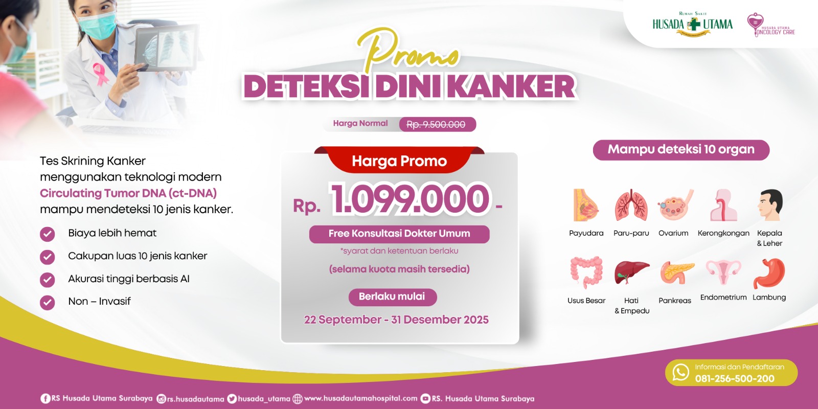 Memiliki tim dokter jantung yang ahli di bidangnya dalam memberikan program pelayanan jantung terpadu dan paripurna, mulai dari taraf pencegahan, pemeriksaan dini, perawatan sampai ke tindakan-tindakan medik, dan tidak kalah pentingnya upaya-upaya dalam perawatan rehabilitatif. Pelayanan Jantung Terpadu RS Husada Utama menyediakan layanan : EchocardiographyPemeriksaan untuk menilai jantung menggunakan gelombang suara TreadmillPemeriksaan untuk menilai asupan darah dan oksigen dari sirkulasi... Lihat Selengkapnya